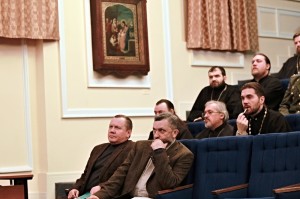 Были заслушаны доклады председателя Синодального Отдела по взаимодействию с Вооруженными силами и правоохранительными учреждениями протоиерея Димитрия Смирнова, начальника Управления по работе с верующими военнослужащими Министерства обороны Российской Федерации Бориса Михайловича Лукичева, архиепископа Белоцерковского и Богуславского Августина, председателя Синодального отдела Украинской Православной Церкви по взаимодействию с Вооружёнными силами и другими воинскими формированиями.