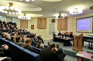 Далее состоялось обсуждение актуальных проблем, связанных с введением в структуру Вооруженных Сил Российской Федерации штатных должностей помощников командиров по работе с верующими военнослужащими. Также участники секции рассмотрели документы, разработанные в Синодальном отделе и регламентирующие деятельность православного военного духовенства.