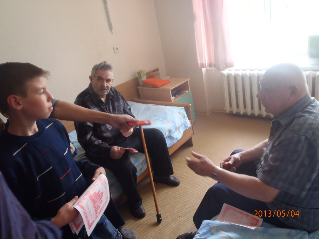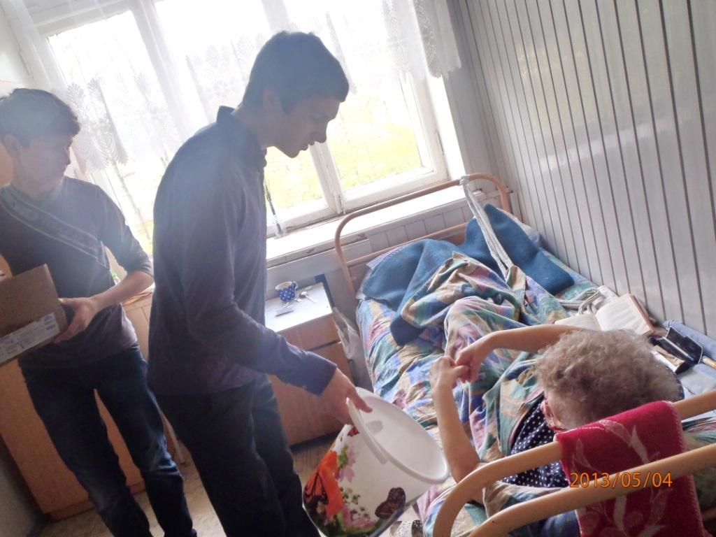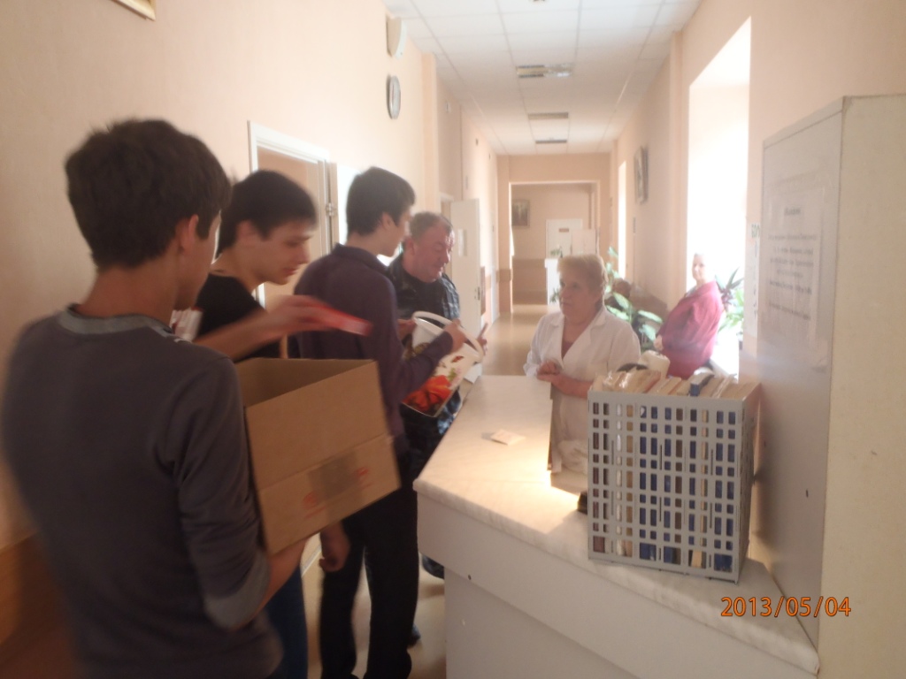 4 мая в Великую субботу воспитанники Воскресной школы духовного пения при храме в честь Вознесения Господня г.Брянск по благословению настоятеля храма протоиерея Владимира Пинько посетили пациентов Отделенческой больницы ст. Брянск-2 московской ж. д. Ребята принесли в больницу пасхальные подарки: крашеные яйца, сладости. Среди персонала и пациентов больницы были распространены просветительские Пасхальные листовки.