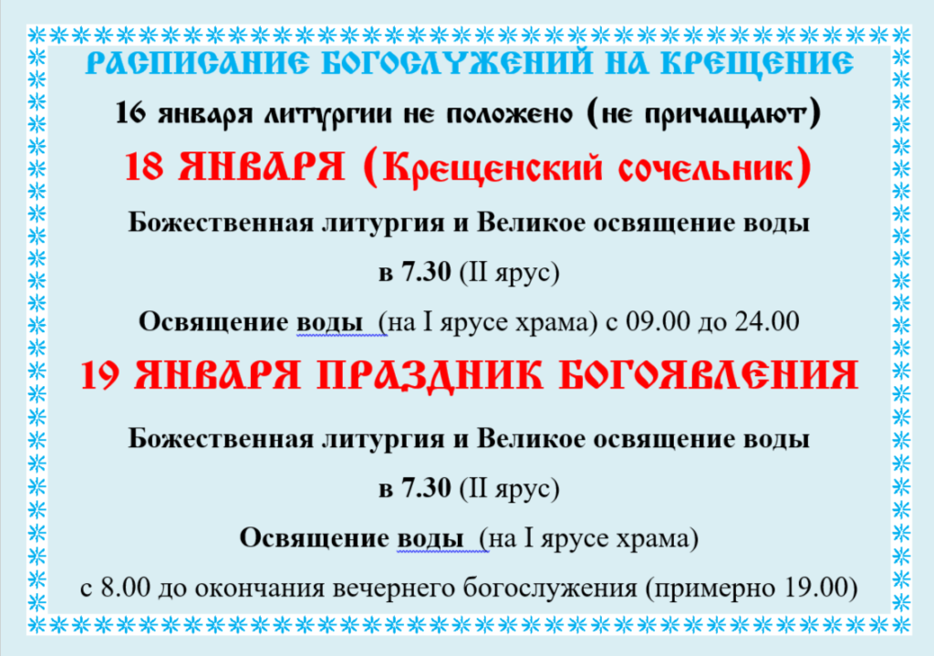 Расписание богослужений
